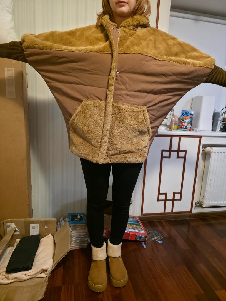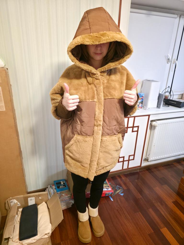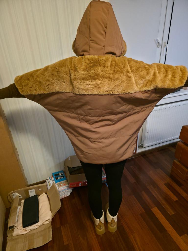 Women's Light Gray Quilted Hooded Winter Coat with Faux Fur Trim and Ribbed Sleeve Detail