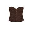 Summer Women's Strapless Straight Collar Decorated Row Button Linen Blend Ruched Corset Style Tops 8372074