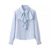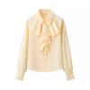 Kaslead New Women Clothes Western Style Fashion Silk Satin Texture Frill Long Sleeve Shirts