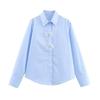 Kaslead New Women Clothes Western Style Decorated Pearls Poplin Long Sleeve Lapel Shirts 2136534 441