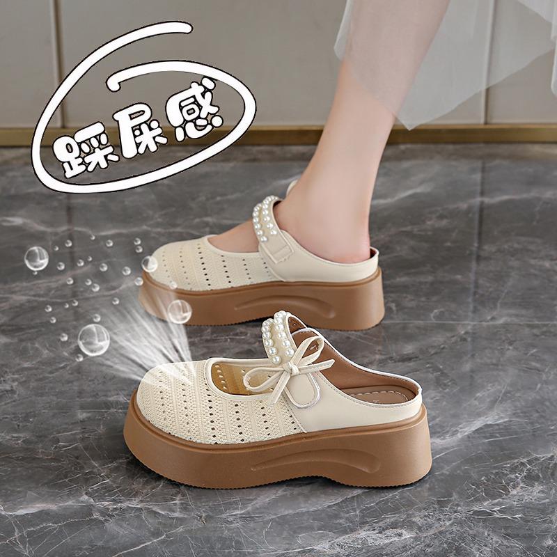 Bow Thick-soled Mary Jane Sandals Women's Summer New Hollow Breathable Bag Head Half Slippers