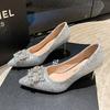 Rhinestone Sequins Shallow High Heels Women's 2025 Summer New One-pedal Women's Shoes, Thin Heels Are Not Tired, and Single Shoes Are Worn Outsi