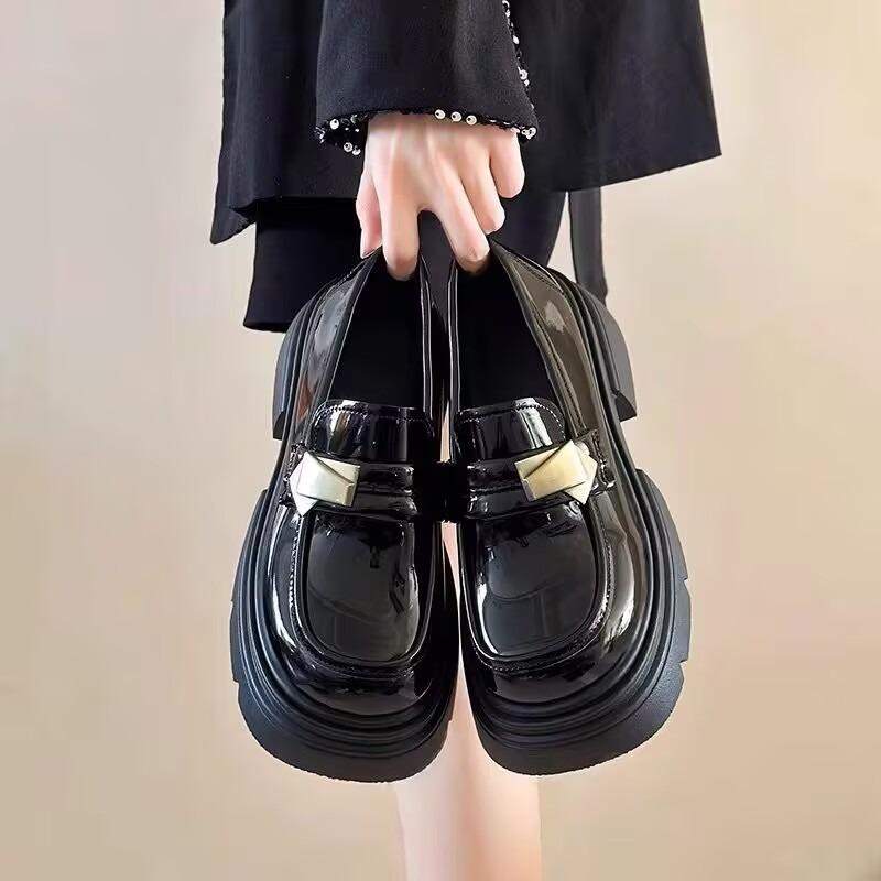Black Retro Small Leather Shoes Women's New Autumn Single Shoes with Thick Soles and Thick Heels