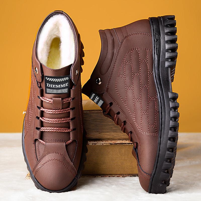 Single Cotton Men's Shoes of the Same Style 2025 New Winter Velvet Thickened Warm Leather Shoes British Style Soft-soled Casual Snow Boots