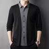 Spring Men's Two-in-One Shirt Sweater Cardigan Knitted Pullover