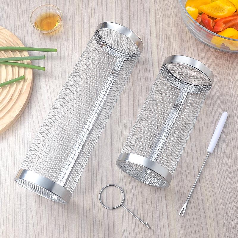 Portable Stainless Steel Rotating Barbecue Cage and Grill Net