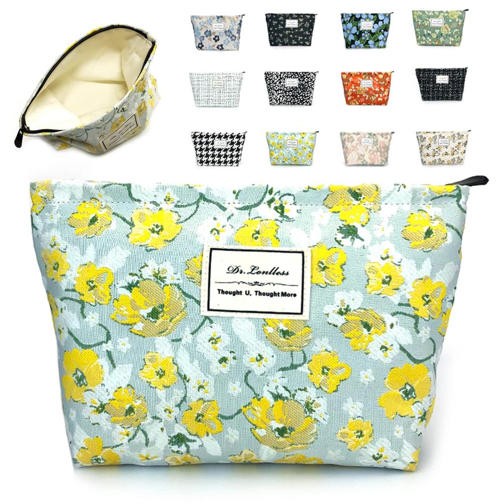 Znmeny Makeup Cosmetic Large Square Storage Travel Pouch Floral Women's Pouch, Pouch, Capacity, Cute, Stylish, Pouch, Portable, (Yellow Print)