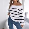 Women's Oversized Sweatshirt for Autumn/Winter Casual Striped Off-the-Shoulder Bell-Sleeve Pullover Women's Long-Sleeved Knitted Jumper