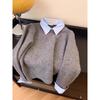 Autumn and Winter New Women's Sweater Shirt Collar Fake Two-piece Knitted Sweater Women's Jacket Long-sleeved Pullover Top