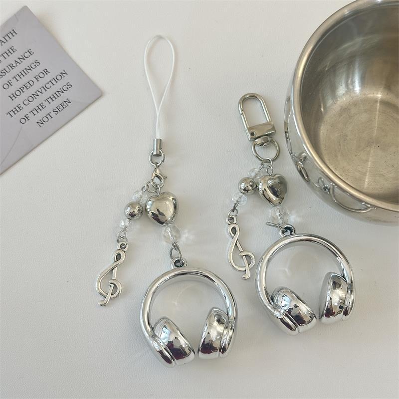 Cute Sweet Headphones Love Beads Mobile Phone Chain Lanyard Keyring Keychain Pendant Backpack Charm Bag Hang Ornaments Girl Gift