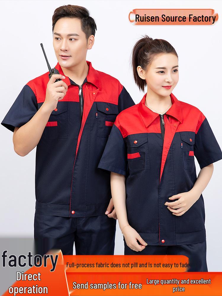 Men's Summer Color Block Short Sleeve Auto Repair Workwear Overalls Set