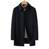 This men's mid-length wool coat is designed for the autumn and winter seasons, offering a sophisticated blend of style and warmth, ideal for middle-aged and elderly individuals. The coat features a regular fit and is insulated with goose down, ensuring excellent protection against the cold. Made from high-quality wool, it showcases a solid pattern that adds a touch of elegance. The tailored neckline enhances its classic appeal, making it a versatile addition to any wardrobe for cooler months.