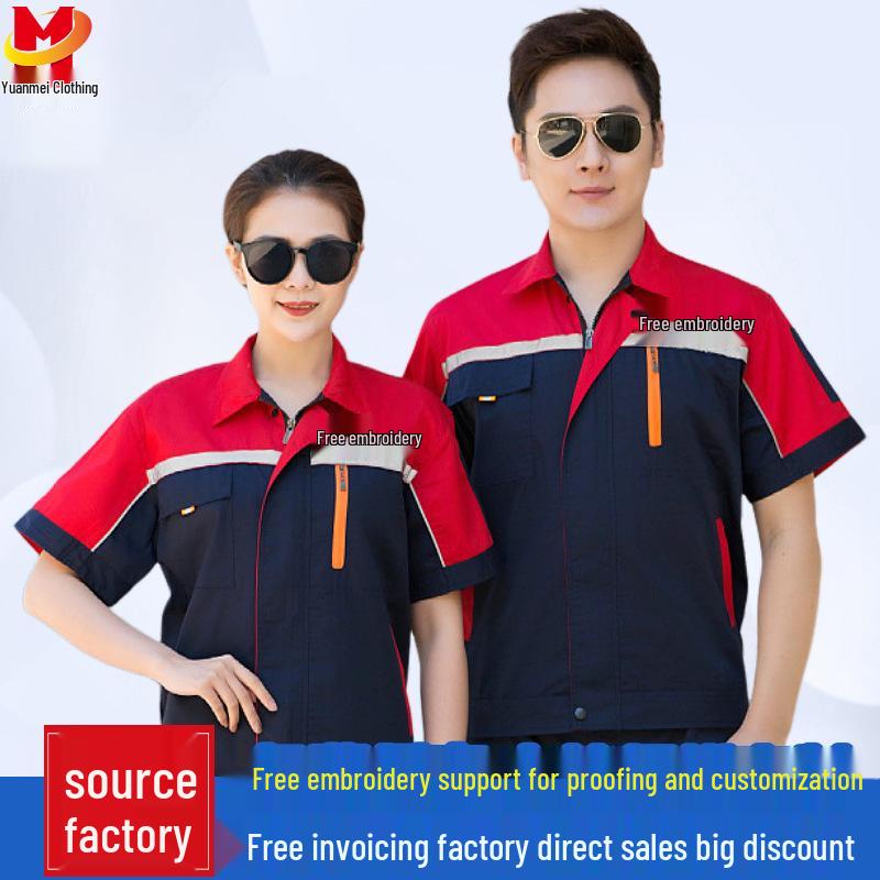 Unisex Short-Sleeve Summer Workwear Set for Auto Repair, Labor Protection, Welding, and Engineering