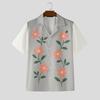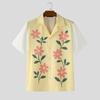 INCERUN Men Lapel Neck Short Sleeve Button Down Floral Print Stitching Casual Shirts Tops
