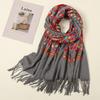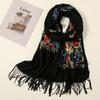 Embroidery Cashmere Scarfs Women Winter Tippert Flower Pashmina for Women Winter Warm Shawl Tassels Vintage Scarves for Ladies