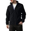 Details --- Mens fuzzy jacket features a stand collar with full-length center-front zipper, two side pockets, relaxed fit and solid color style. Designed for outdoor activity, this polar fleece jacket takes you everywhere you need to go