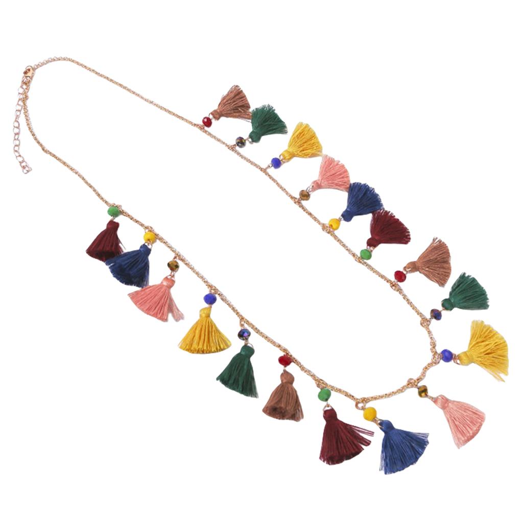 Vintage Bohemian Turquoise Tassels Necklace Ethnic Styles Sweater Chain for Women and Girl Fashion Travel Accessory
