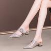 Pearl Rhinestone Baotou Flat Heel Cool Slippers Women's Summer Wear Fashion Medium Heel 2025 New Thick Heel Half Slippers