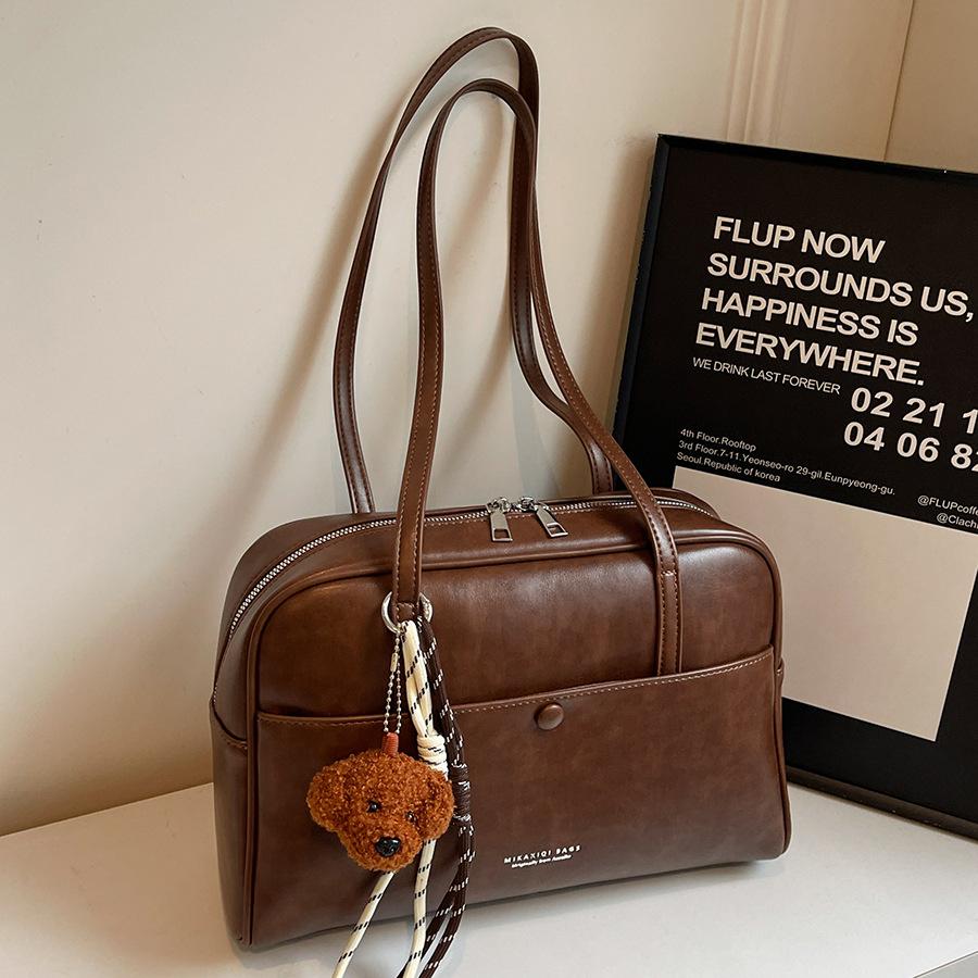 - **Structured Multi-Way Bag Details**: Features a stylish satchel bag silhouette with PU material, a cute charm (available with or without charm), and versatile carrying options (handheld, single-shoulder). It exudes retro and chic charm, with multiple color and charm variations to cater to diverse style preferences.
