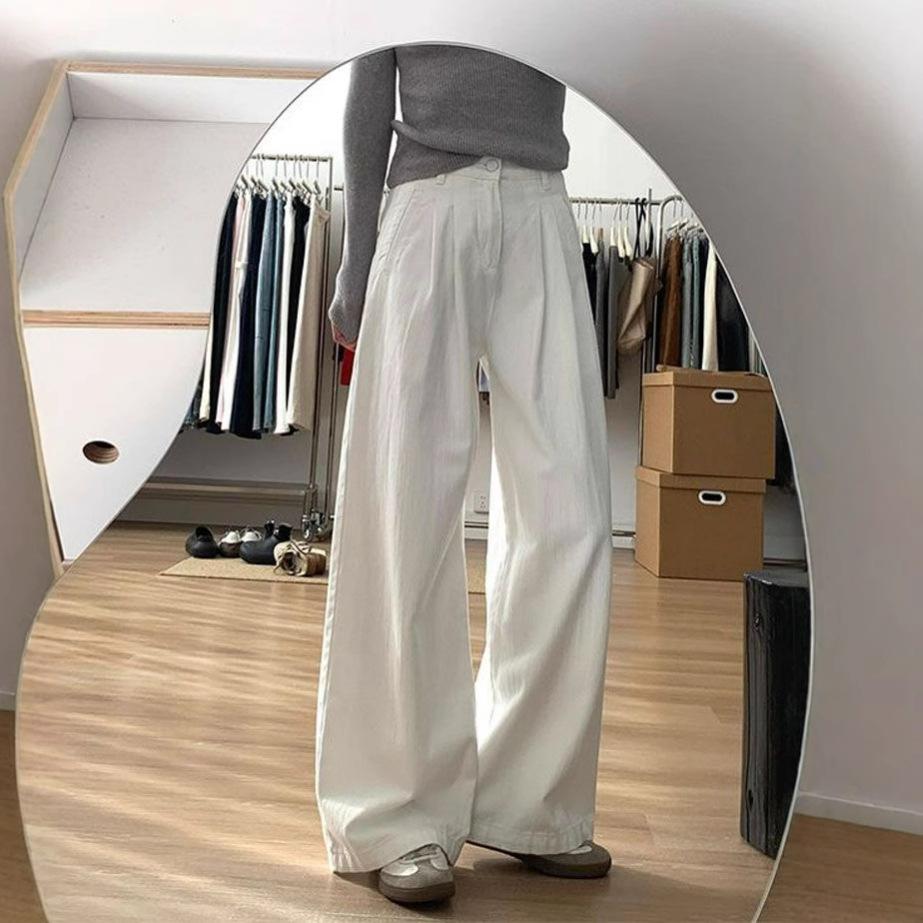 Fashionable Comfortable Loose White Wide Leg Jeans Women's Large Size Muscle Sense High Waist Straight Jeans Trousers Jeans for Women Long Denim Pants
