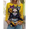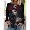 Sugar Skull Pattern Womens Long Sleeve Shirt Day of the Dead Shirts Summer 3D Printed Tops Y2k Gothic Style Women's Clothing