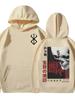 Hoodie Casual Oversized Pullovers Anime Berserk Guts Graphic Autumn Winter Fleece Streetwear Tops