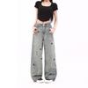 Comfortable Vintage Puppy Embroidery High-waisted Wide-legged Jeans Women Loose Thin Straight Dragging Floor Trousers Jeans for Women Long Denim Pants