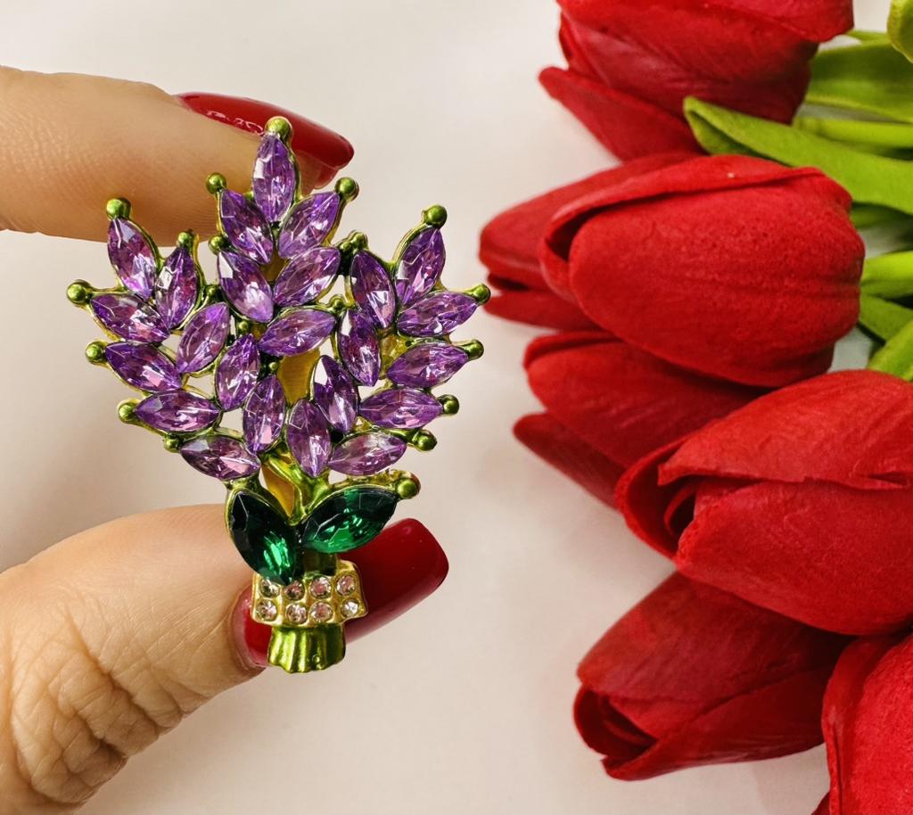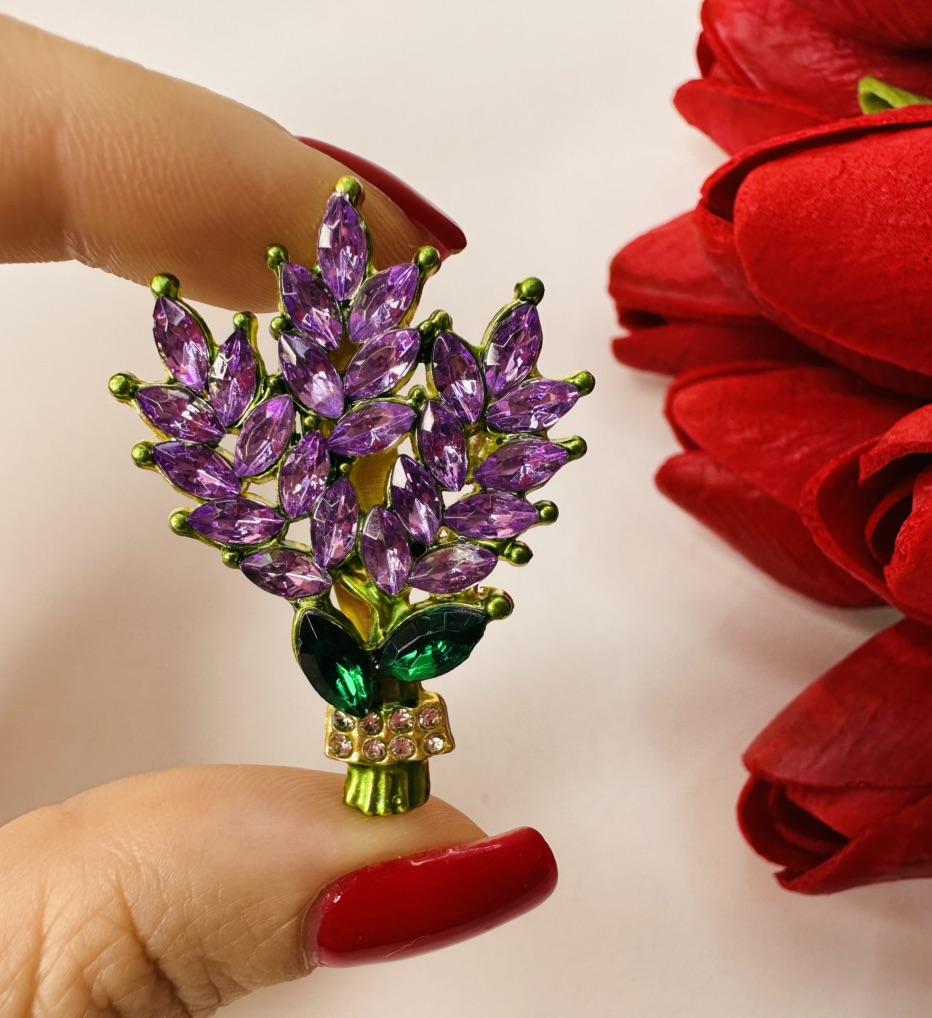 Exquisite Purple Lavender Brooch Women's Brooches Crystal Rhinestone Bouquet Pins Clothing Coat Luxury Jewelry Girl Gift