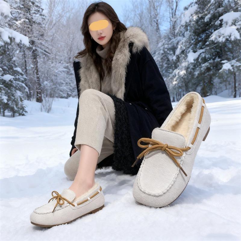 New Women's Shoes with Fleece, Flat, One-foot Thick Fleece Warm Cotton Shoes