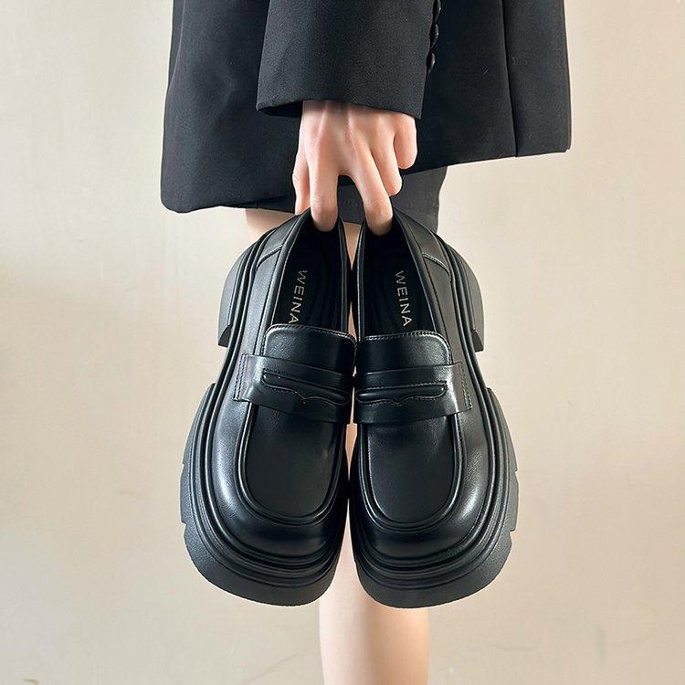 Platform Thick Heel British Style Small Leather Shoes Women's 2025 New Autumn and Winter One-pedal Women's Shoes Single Shoes Black Loafers