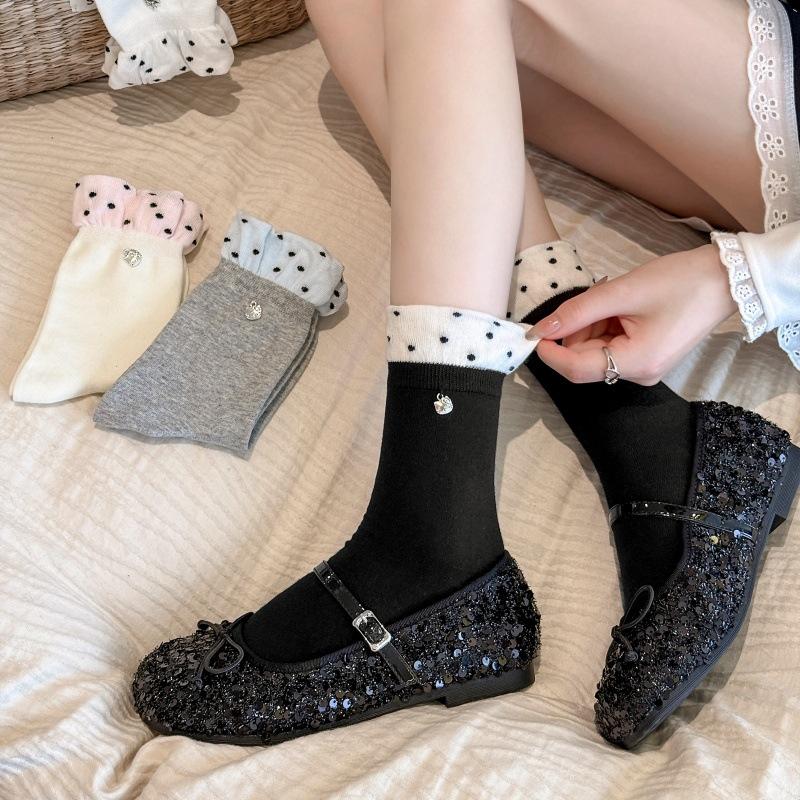 Female Spring and Autumn Sweet Cartoon Cat Pendant Collision Color Polka Dot Bubble Mouth College Wind Tube Pile Socks