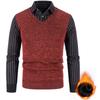 Men's Solid-color Casual V-neck And Square Neck Pullover Knitted Sweater, Men's Fake Two-piece Striped Neck Long-sleeved Sweater