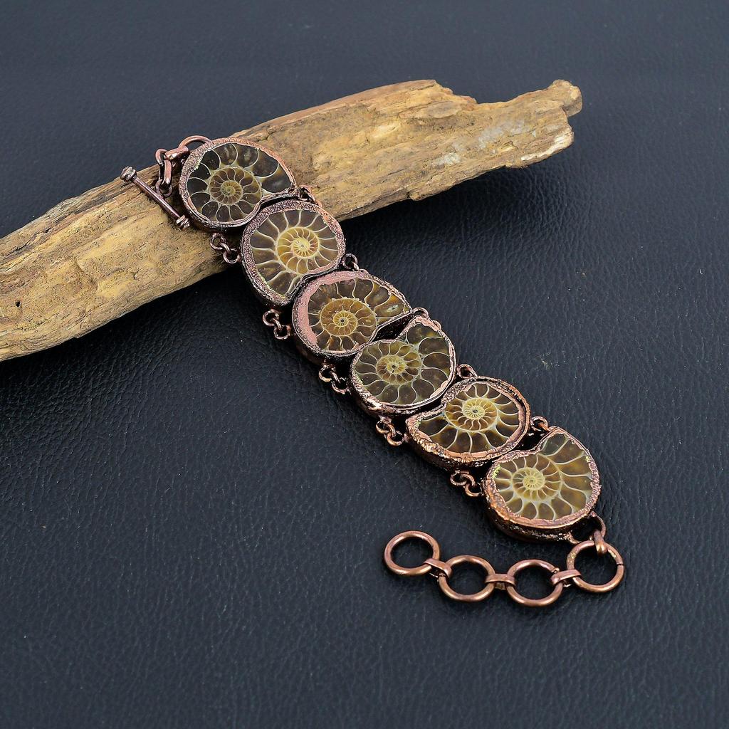 Ammonite Fossil Jewelry, Copper Electroformed Gemstone Bracelet, Handmade Jewelry, For Memorial Day