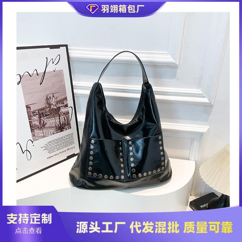 Retro Bag Women's Large-capacity New Summer Versatile Shoulder Shopping Bag Rivet Commuter Tote Bag