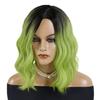 Synthetic Hair Green Wigs for Women Short Curly Wavy Wig with Side Part Bangs Heat Resistant Girls Party Halloween Cosplay Wig