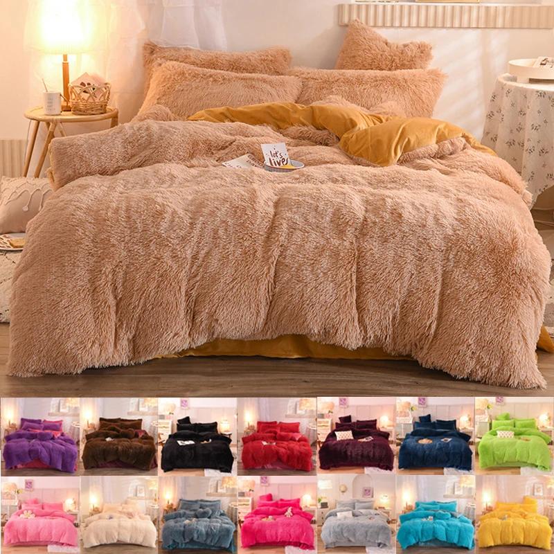 3/4PCS Winter Warm Plush Duvet Cover Pink Mink Velve+fluffy Flannel Quilt Cover Queen King Size Luxury Double Bed Bedding Set