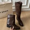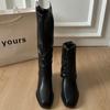 Fashion 2025 Winter Vintage Women Knee High Boot Concise Slip On Thick Heel Shoes Square Toe Knight Long Booties