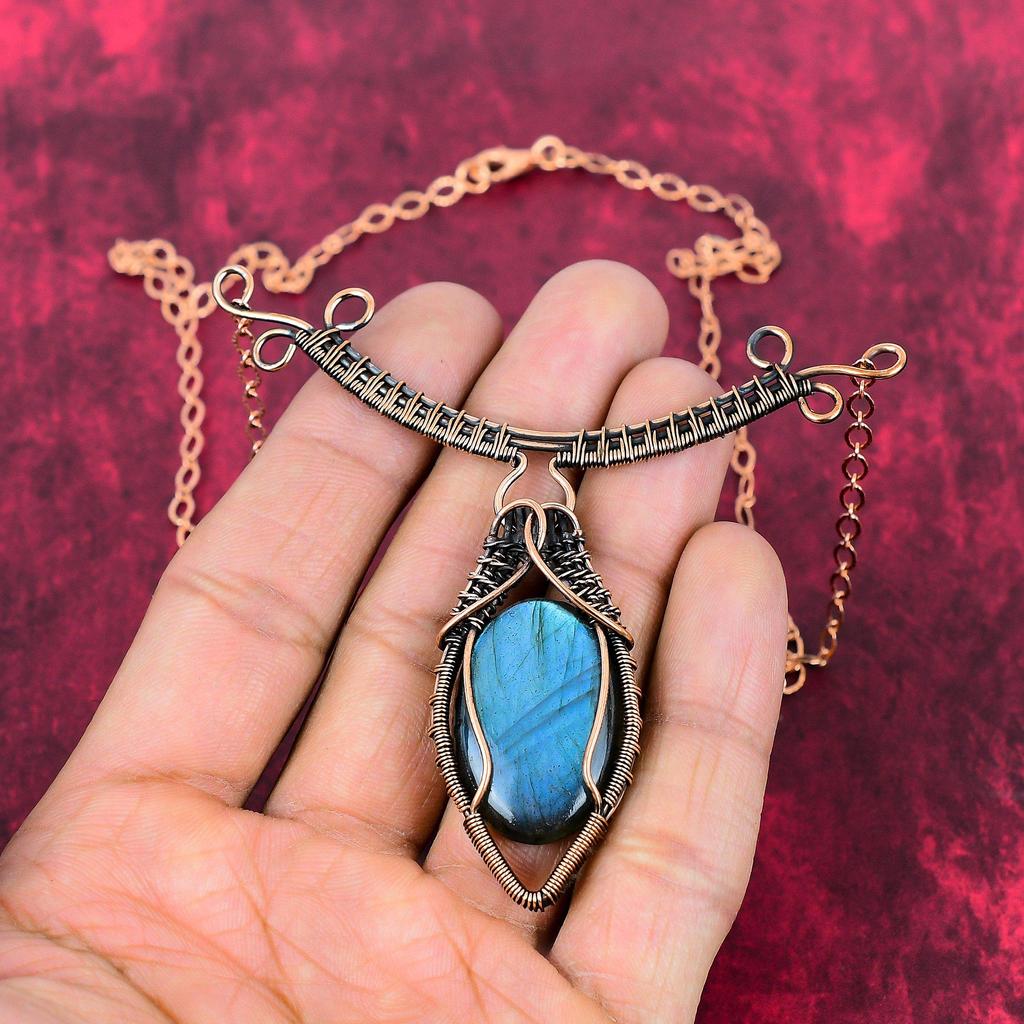 Labradorite Necklace Copper Wire Wrapped Necklace Adjustable Chain Necklace Elegant Copper Jewelry Handmade Gemstone Necklace Wedding Gifts