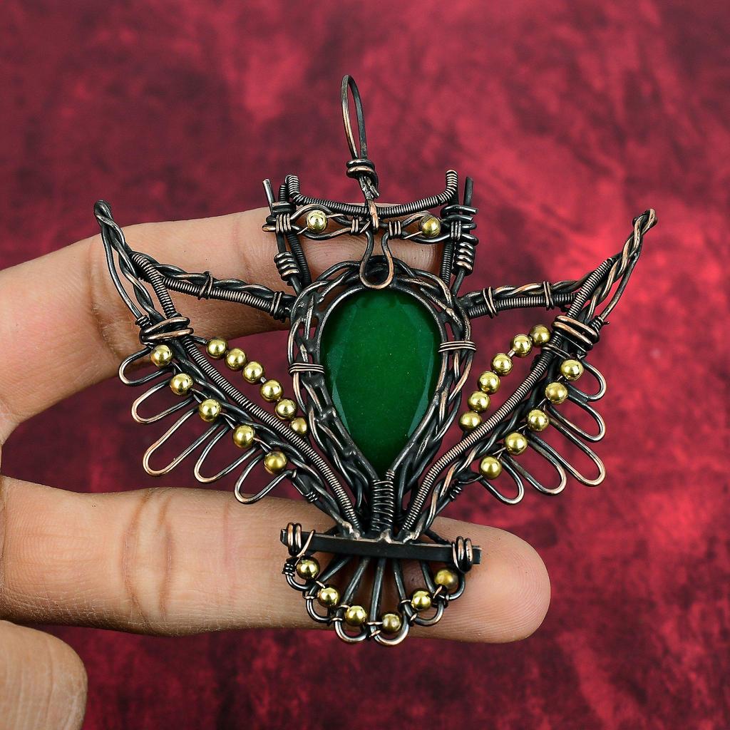 Faceted Zambian Emerald Pendant Copper Wire Wrapped Pendant Handmade Copper Jewelry Gemstone Pendant Wedding Gifts Wire Wrapping Owl Jewelry