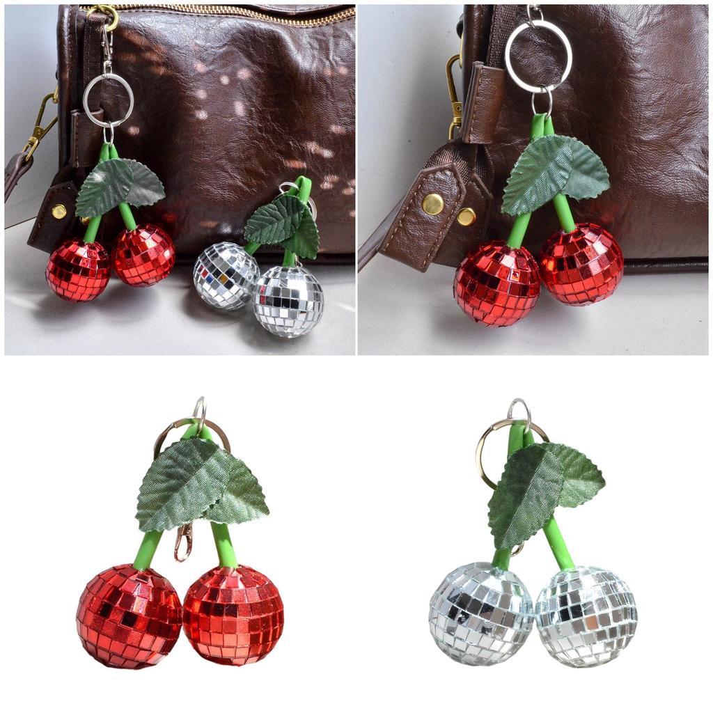 Sparkling Disco Cherry Mirror Pendant Keychain Bag Charm Glossy Retro Accessory For Keys Purse Decoration