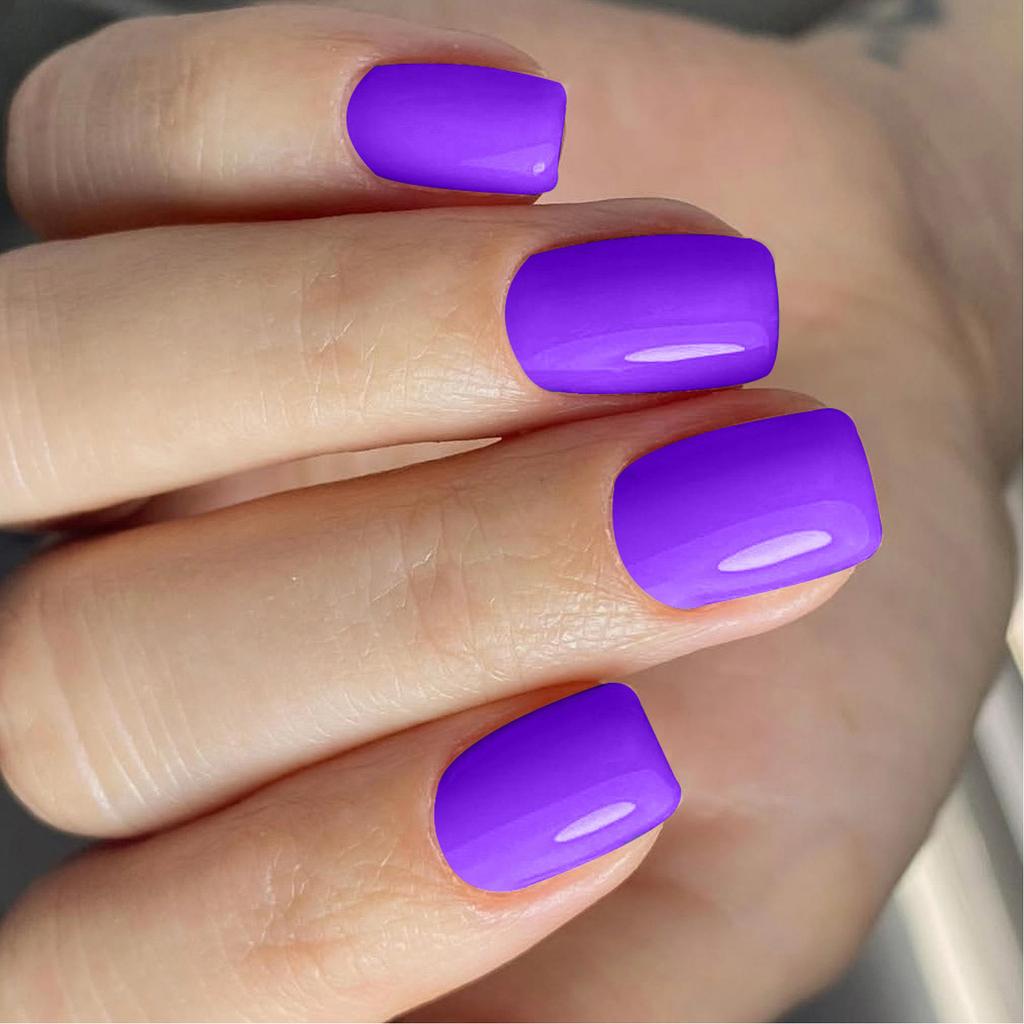 24 Pcs Solid Color False Nail Reusable Artificial Nail Glossy Full Cover Stick On Nail Short Square Press On Nail
