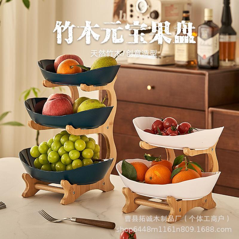 Elegant Three-Tier Bamboo Snack and Fruit Tray