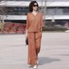 Tencel Linen Summer Set: Plus Size Casual Loose Top & Wide Leg Pants for Middle-Aged Moms.