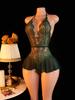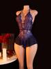 Pink Sexy Lace Bodysuits Crotchless Deep V Open Teddy Babydoll Sheer Sleepwear Elegant & Seductive Erotic Lingerie For Women
