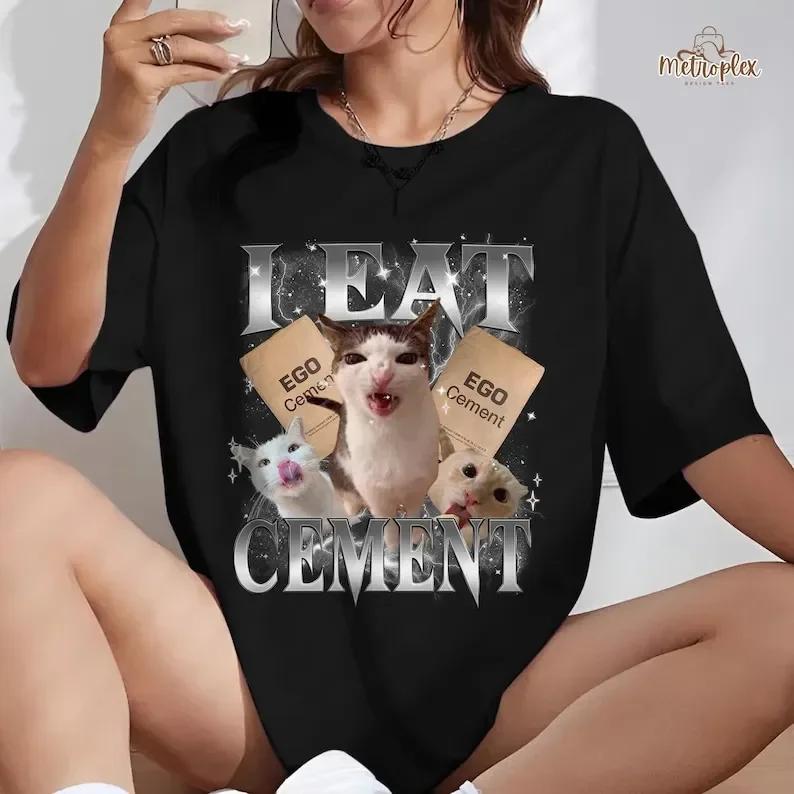 I Eat Cement Funny Cat Meme Shirt Stupid Ugly Unhinged TShirt Silly Oddly Tee for Gen Z Birthday Gift Cat Lover