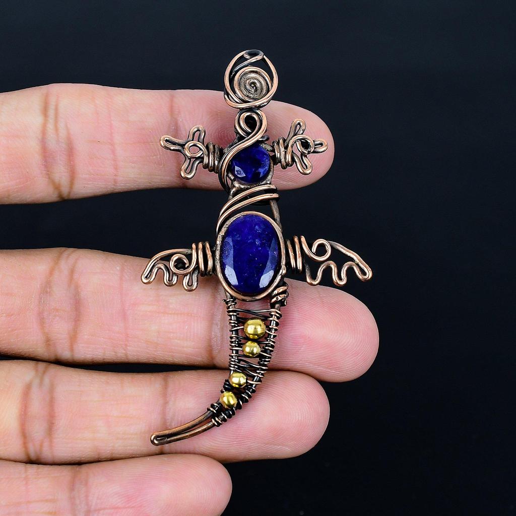 Blue Sapphire Pendant, Handmade Gemstone Pendant, 999 Copper Wire Wrapped Pendant Antique Jewelry, For Engagement Gift