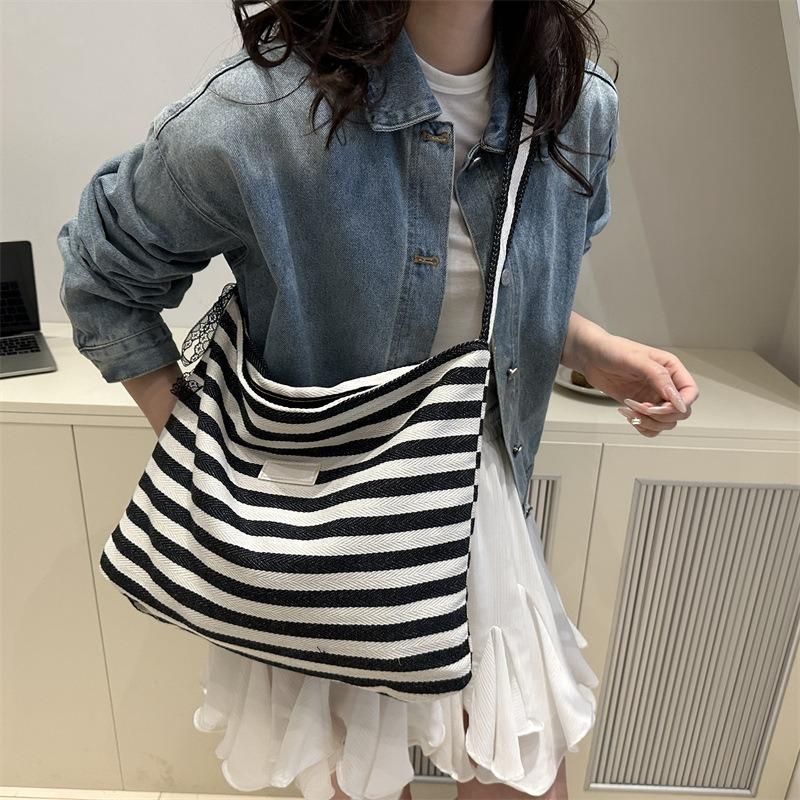 New Striped Cloth Bag Lazy Literary Style Tote Bag Student Large Capacity Casual Shoulder Armpit Bag