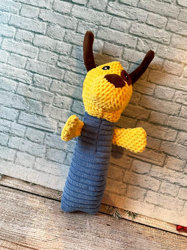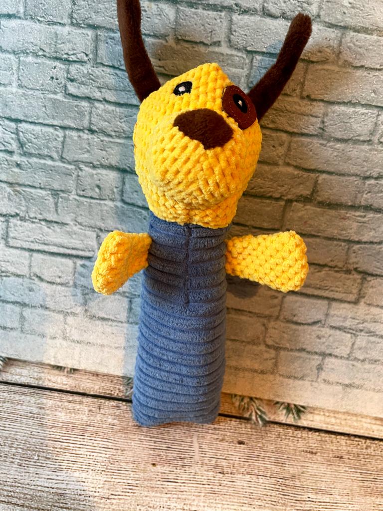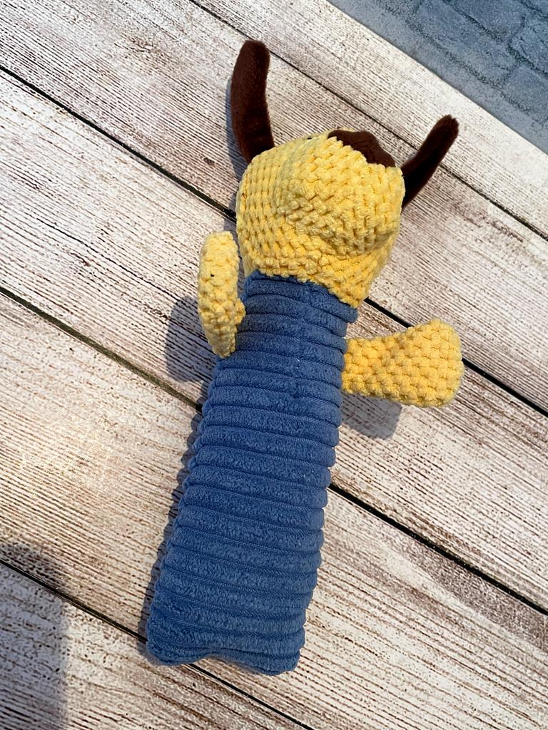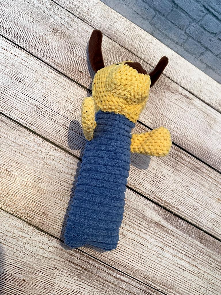 Perfect toy for the pet! This toy is one of the most successful ones we've bought! Both the dog and the cat in the house just don't stop playing with it. The sounds it makes really attract attention, and it gives a sense of a real "friend" – especially for animals that are often alone. The material – corn kernels – is surprisingly high quality! It is resistant to chewing, does not break down easily, and that's important for a dog who really loves to destroy toys. The velvety design is pleasant to the touch, easy to grip, and the cute shape makes it not only useful but also cute on the pet's sofa or bed.. Totally recommend to anyone looking for a toy that will both entertain, occupy, and last a long time!