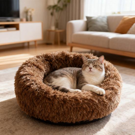 Round Pet Nest Bed Fuzzy Cat Bed Calming Donut Bed with Non-Slip Bottom Washable Fluffy Dog Bed for Small Medium Dogs And Cats