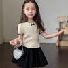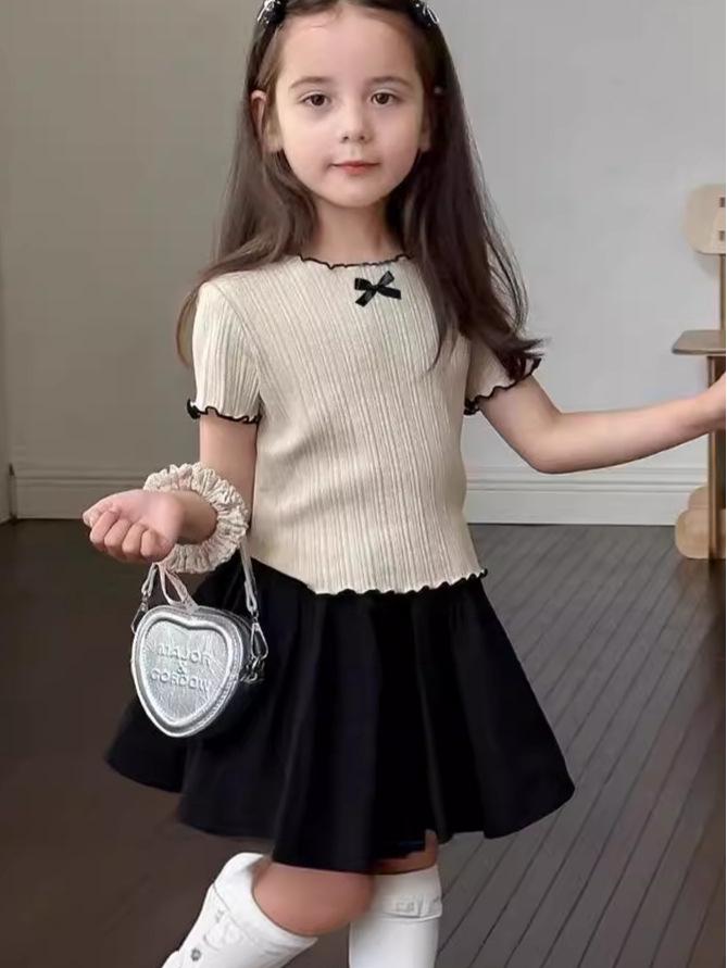 This stylish top is perfect for summer fashion, featuring a Korean-inspired design with short sleeves and a charming ruffle bow detail. Made from a soft artificial silk material, it offers a light and airy feel for added comfort in warmer weather. The top's modern and playful look makes it a versatile addition to any girl's wardrobe.